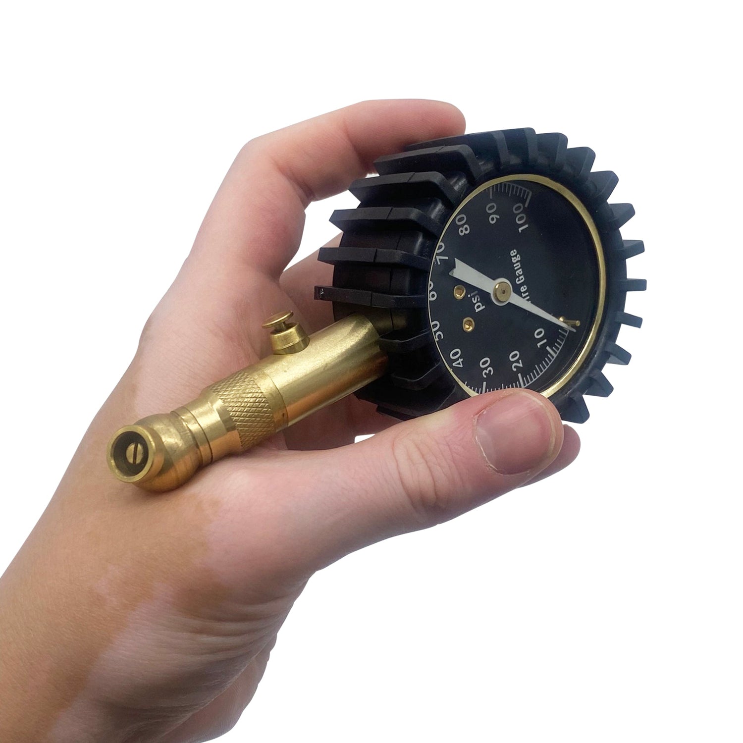 Air down your tires to gain better offroad traction and use our high-performance gauge to ensure accurate PSI. Tire deflation is an essential step before heading to the beach to drive in the sand or hitting that muddy or rocky terrain. Decreasing the air pressure with tire deflation tools increases the traction area of your tire so you can have fun without getting stuck. Use our high-performance gauge to ensure accurate PSI of your tires after air down. High-Performance brass internal and externals with 360-degree swivel chuck. Reads 0-100psi.