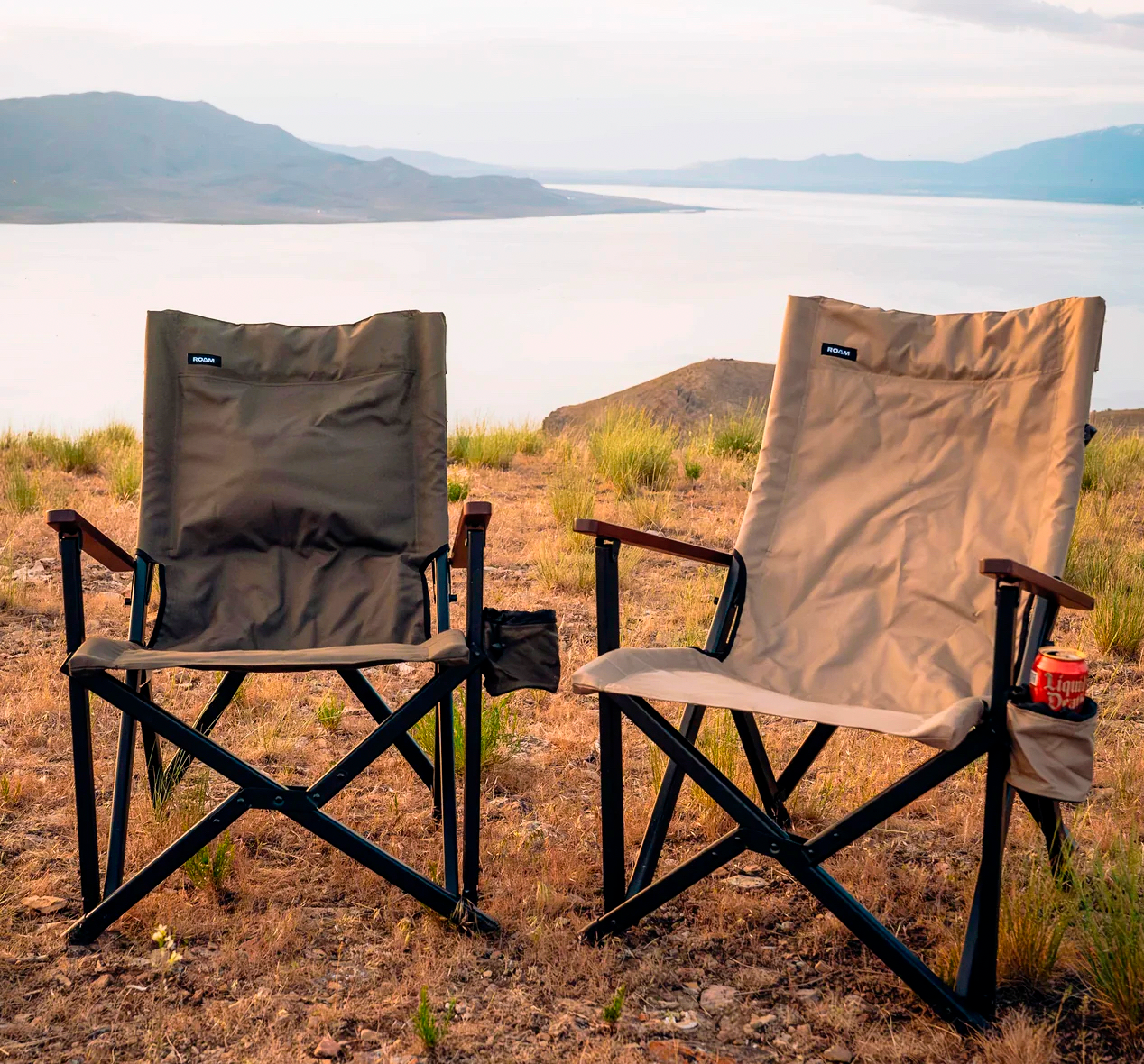 Crafted with attention to detail, this chair is designed to withstand the rugged terrains of the wilderness. It features a black aluminum frame and is constructed from high-quality materials, ensuring long-lasting durability and support. The seat and backrest are with a durable canvas material that holds you in the perfect sitting position. With its ergonomic design and adjustable features, this camping chair effortlessly adapts to your body, providing optimal relaxation after a day of hiking or exploring. Whether you're sitting around the campfire or simply taking in the breathtaking views, this camping chair promises a secure and cozy seating experience, making it a must-have for any outdoor enthusiast. The Camp Chair comes in Tan and Olive.
