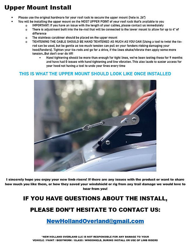 IMPORTANT: The lower mount of our limb riser kit slides in between the fender and hood bodywork of your vehicle. PLEASE make sure you use some edge protection on the bodywork otherwise you risk scratching the paint.