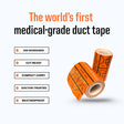 The world’s first medical-grade duct tape, now in a travel-ready roll. With 288 pre-printed bandage templates built in, this 10’ tape is skin-safe, compact, and strong enough for real emergencies—whether you’re on the trail, at the game, or at home.