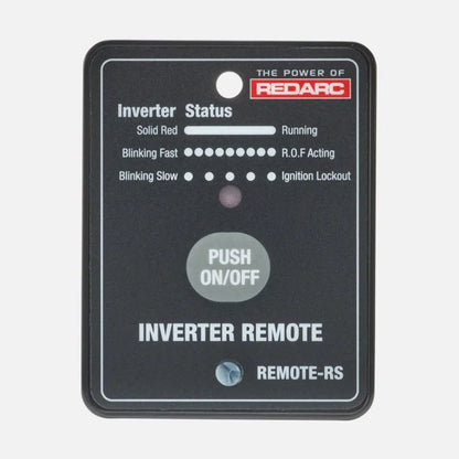 The REMOTE-RS has been designed to work with REDARC RS Series Inverters. It allows remote ON/OFF Switching of the inverter and provides a visual indication of the Ignition Lockout and Return Override Functions.